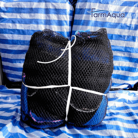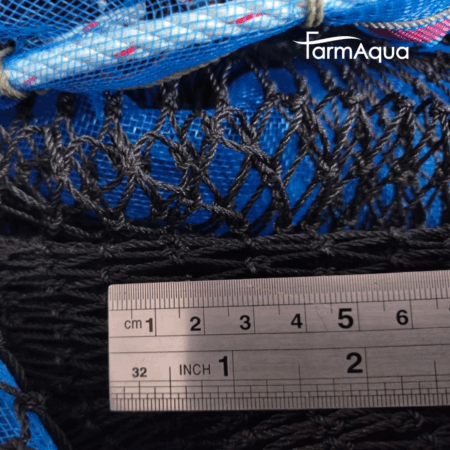 Dimensiones (LxAxP): 5.0 m x 5.0 m x 1.5 m. La jaula de la foto tiene malla abierta de 2.7 cm de polietileno 380D/24, malla sin nudos.